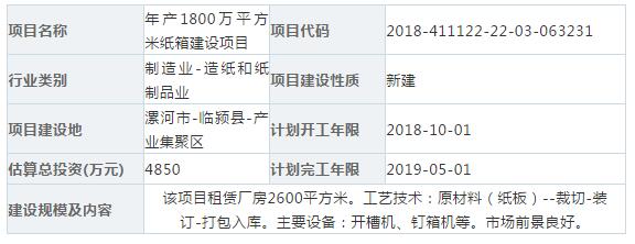 河南新增7个纸板、纸箱项目,最高投资2.6亿元