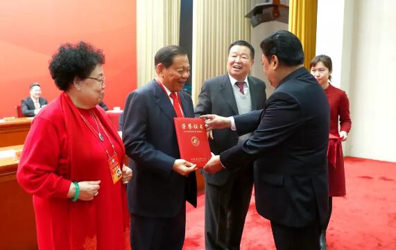 大会由中国侨联主席万立骏主持。在会上,全国人大常委会副委员长白玛赤林向金鹰集团主席陈江和颁发第五届中国侨商联合会荣誉会长证书。