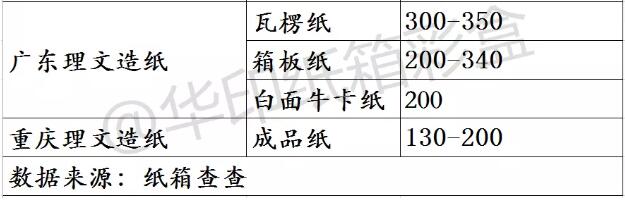3、龙头纸厂玖龙、理文的包装纸参考报价