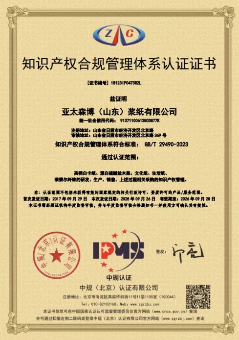 在为期3天的严格评审中,公司知识产权管理体系凭借持续稳定的运行质量、规范高效的流程管控,顺利通过审核,不仅未发现任何不符合项,更成功实现文化纸、生活纸、莱赛尔纤维三大业务领域的审核扩项,同步完成 GB/T 29490-2023新标准的换版工作,彰显了企业在知识产权管理领域的深厚积淀与创新活力。