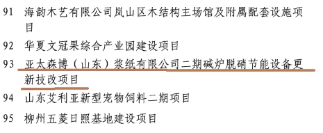 近日,山东省发改委印发了2025年省级重点项目调整名单的通知,亚太森博(山东)浆纸有限公司二期碱炉脱硝节能设备更新技改项目被列入2025年山东省绿色低碳高质量发展重点项目(调入)名单。