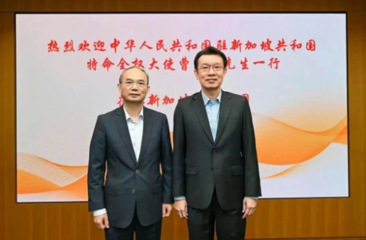 10月9日,中国驻新加坡特命全权大使曹忠明参访金鹰集团,并与金鹰集团总裁郑伟霖一行座谈交流。使馆公使衔参赞宗长青、参赞康伊明陪同。