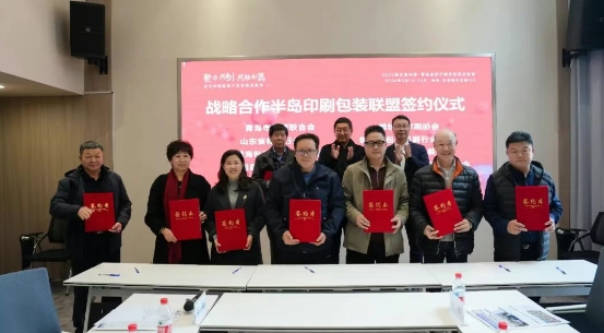 由青岛市包装联合会牵头,携手山东省标识行业协会、潍坊市印刷协会、烟台市包装行业协会、威海包装印刷工业协会、寿光市印刷包装行业协会、东光县纸箱包装机械制造联合会、玉田县印刷包装机械协会、即墨彩塑印刷包装分会以及海名集团,共同成立“半岛印刷包装联盟”,助推展会,共同推动半岛印包行业发展。