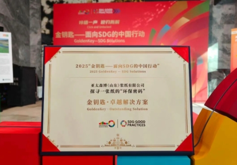 11月28日,2025“金钥匙——面向SDG的中国行动”发布典礼在北京举办。本次评选共有128家企业的129项解决方案参与,经过初评筛选、公众网络展示、现场路演展示以及专家评审,亚太森博(山东)浆纸有限公司“探寻一张纸的环保密码”项目以“可持续发展教育”赛道路演第1名的成绩荣获“金钥匙·卓越解决方案”,成为全国唯一一家获奖的制浆造纸企业。该奖项是对亚太森博在绿色制造、环保创新与公众教育领域长期耕耘的充分认可与褒奖。
