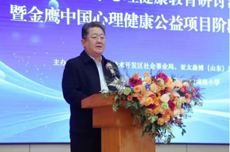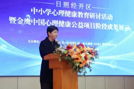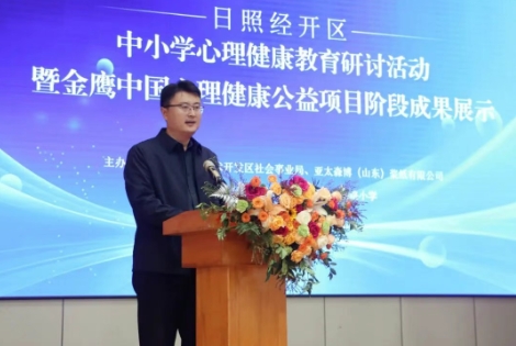 为深入贯彻立德树人根本任务,筑牢区域中小学心理健康教育防线,提升心理健康教育教师专业素养,促进学生身心和谐全面发展,12月9日,日照经济技术开发区中小学心理健康教育研讨活动暨金鹰中国心理健康公益项目阶段成果展示活动在连云港路小学召开。中国社会工作联合会社会心理服务工作委员会、日照市教育局、经开区社会事业局、亚太森博(山东)浆纸有限公司有关负责人以及经开区68位中小学心理健康教育专兼职教师,经开区各中小学主要负责人、部分班主任等150余人参加活动。