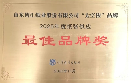 近日,山东博汇纸业旗下“太空梭”品牌荣获高等教育出版社颁发的“2025年度纸张供应最佳品牌奖”。 这一荣誉,既是对“太空梭”品牌纸张品质的高度认可,更是对其长期支持中国教育出版事业的表彰。 01、权威认可,品质传承 高等教育出版社作为中国教育出版领域的领军机构,其评奖标准素以严格著称。 此次“太空梭”品牌能够获得大奖,证明其在纸张品质、稳定供应和专项服务等多个维度均达到行业标杆水平。这一奖项不仅代表了客户对“太空梭”品牌的信任,也标志着中国高端纸张制造的新高度。
