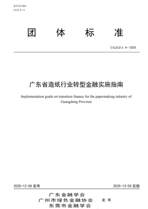 12月10日,2025年广东绿色金融改革创新推进会暨转型金融标准发布会”在广州南沙举行,会上发布《广东省造纸行业转型金融实施指南》《广州市转型金融实施指南》两项标准,填补了广东省乃至全国范围相关领域的空白,为产业绿色化转型提供明确指引。
