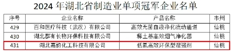 湖北嘉韵化工科技有限公司(以下简称“湖北嘉韵化工”)深耕造纸化学品领域近30年,2025年凭借低氯高效环保型湿强剂核心产品成功入围湖北省经济和信息化厅发布的《2024年湖北省制造业单项冠军企业名单》,成为湖北省制造业单项冠军企业中的新晋力量,彰显了企业在精细化工领域的技术硬实力与市场竞争力。