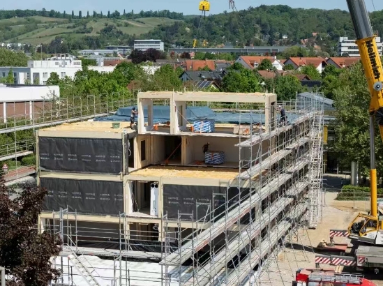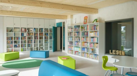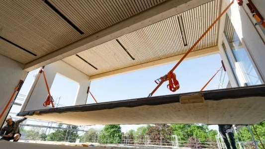 德国贝格施特拉塞(Bergstraße)地区一所小学近日完成了一栋全新的模块化教学楼扩建工程。项目采用芬林梅沙木业 Kerto® LVL单板层积材作为核心材料,实现了资源高效、施工迅速且符合现代教育需求的木结构建筑解决方案。Kerto LVL S 梁提供大跨度屋顶结构,Q 型板用于打造纤薄而稳定的内墙,最终呈现出强度优异、布局灵活的现代化学习空间。 快速增长的学位需求推动模块化建设 根据研究,德国在 2030 年前将新增约 70 万个入学需求。对于像贝格施特拉塞(Bergstraße) 这样人口持续增长的地区,教育空间短缺成为迫切难题。本斯海姆的新教学楼仅用数月建成,充分展示了建筑创新、可持续性与速度可以兼得。 精准预制大幅缩短工期 这座建筑共由80个木结构预制模块组成,由德国鲍姆加滕有限公司(Baumgarten GmbH)制造并运输至现场。高度工业化的预制生产极大地减少了现场施工时间,对学校正常运作与周边社区的影响也降到最低。 新建筑外立面采用垂直木质设计,呈现自然、亲切的外观。整栋建筑采用高能效设计方案,包括带热回收的分散式通风系统、集成空气源热泵以及大面积屋顶光伏系统,有效覆盖建筑的主要能源需求。