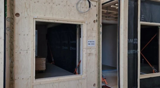 Kerto® LVL S 梁:打造大跨度屋顶的关键材料 项目的核心结构材料之一是 Kerto LVL S 梁,用于构建大跨度屋顶。该材料具有优异的弯曲与抗拉性能,能满足承重和空间灵活性的双重需求,特别适用于模块化学校建筑。 其良好的尺寸稳定性确保了精确预制,使现场安装快速、顺畅,并简化布线及屋面固定等施工流程。 Kerto® LVL Q 型板:纤薄稳固的高性能内墙 内墙采用 Kerto LVL Q 型板,其独特的横向胶合结构使其具备出色的板材刚度与尺寸稳定性,在保持坚固的同时显著减少墙体厚度。对于常以双层墙体方式拼装的模块化建筑而言,墙体厚度的减少意味着更高的使用面积,对于学校尤为重要。 负责该项目的莫比斯佩斯有限公司 (Mobispace GmbH)总经理克里斯蒂娜·格里姆 (Christine Grimm) 表示:“Kerto LVL 的使用是项目成功的重要因素,让我们在模块化校园建设中取得了许多积极成果。”