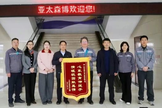1月30日,日照市金海岸中学丁雪舰书记、张守强副校长一行到访亚太森博(山东)浆纸有限公司,参观公司展厅并向公司赠送“心系教育伸援手,情暖校园献真情”锦旗,对公司多年来的关心支持表示感谢。金鹰集团山东公共事务总经理、公司党委书记李润明参与交流。