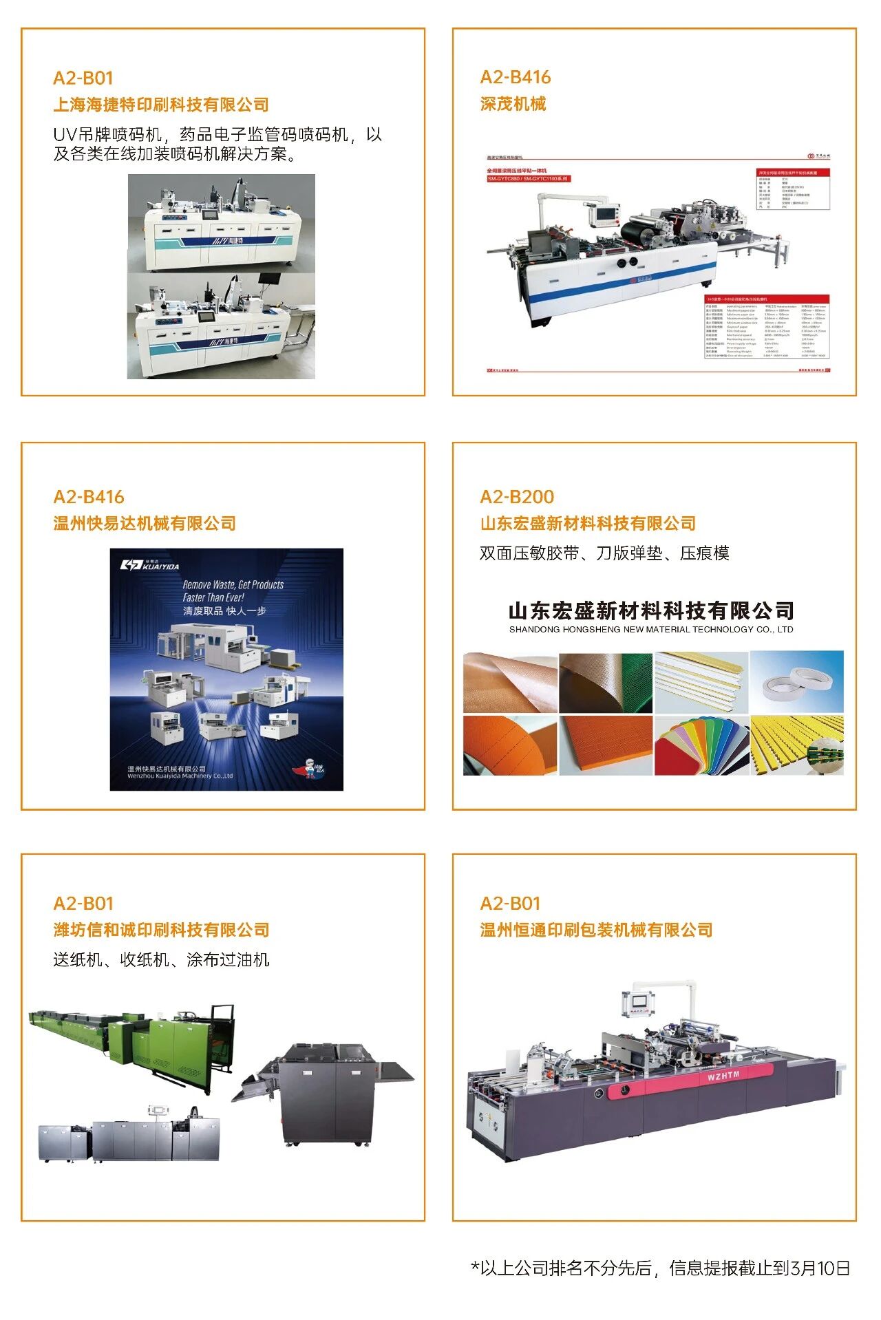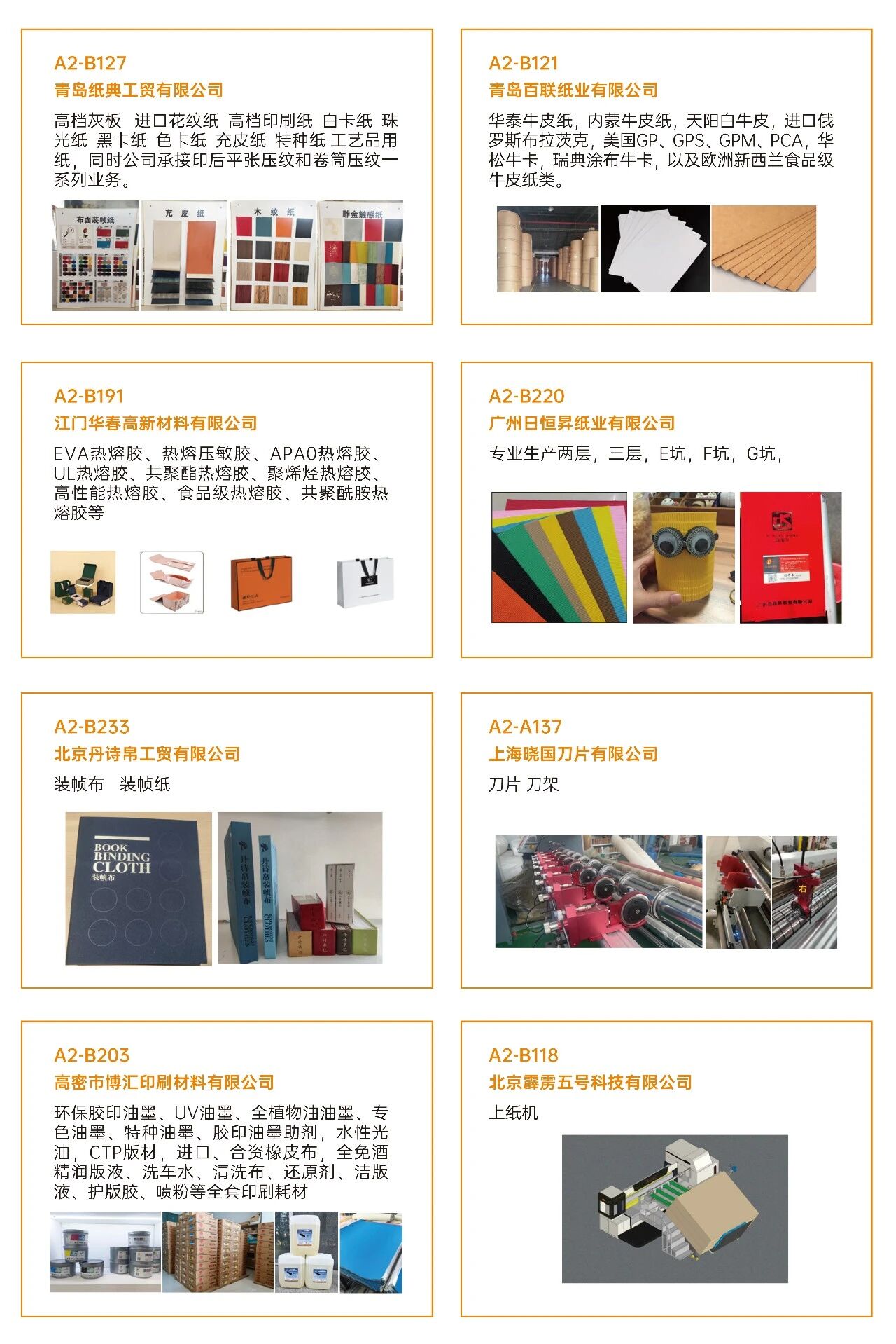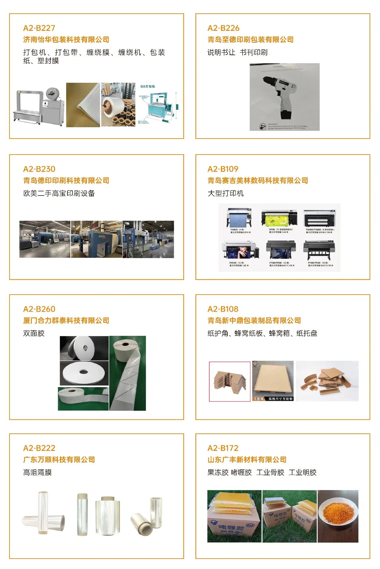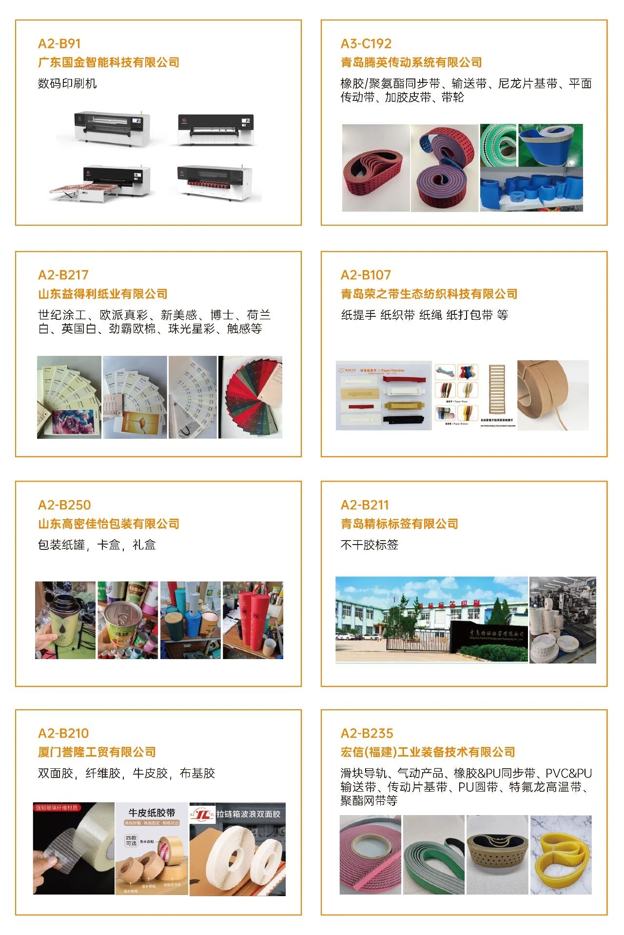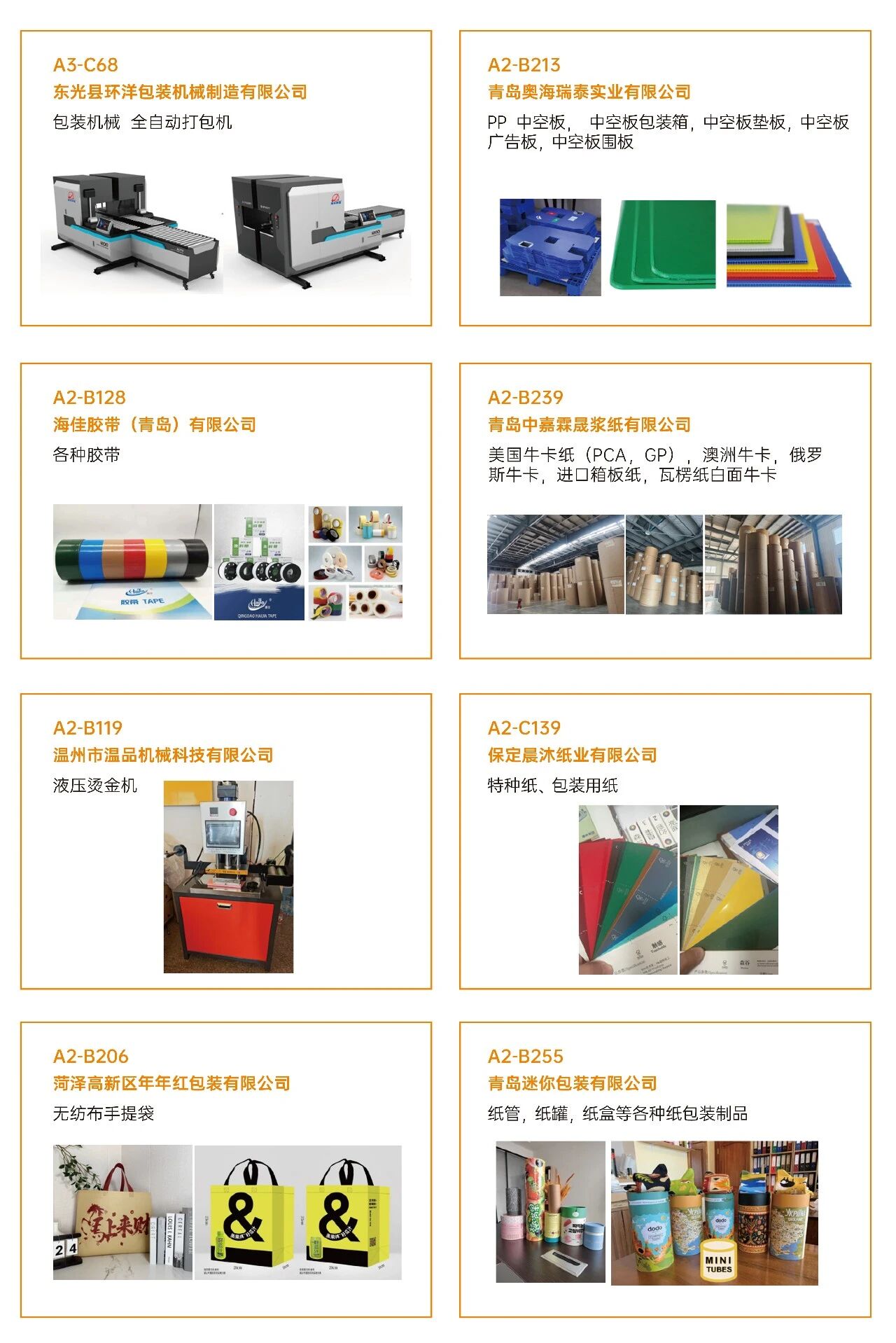 03看什么?聚焦“智造”与“绿动”? 展会深度聚焦智能制造、工业4.0、创新包装及可持续发展等热点,不仅看设备,更看趋势 。 ·印刷设备:数字印刷设备、印前处理设备、印后加工设备、印刷机械设备、油墨及耗材。 ·瓦楞纸箱/彩盒机械:瓦楞机、复瓦机、分纸机、接纸机、压痕机、纵切机、开槽机、粘箱机、钉箱机、制胶机、瓦楞辊、硬盒加工设备及其它设备。 ·智能包装机械:模切机、糊盒机、裱纸机、燙金机、激光切割机、贴窗机、上胶机、纸袋加工设备、胶盒加工设备、纸面处理设备、纸杯/纸盒自动生产线、喷胶系统、编码和识别系统。 ·标识标签:防伪标签解决方案、喷码机、激光打码机、热转印设备、条码机、贴标机、RFD标识系统、软件平台、标签印刷配件、条码识别系统。 ·包装成品及材料:艺术品包装、食品及饮品包装、医药及化妆品包装、珠宝首饰包装、烟草包装、服饰包装、特种纸/膜、包装设备配件、特殊印料。