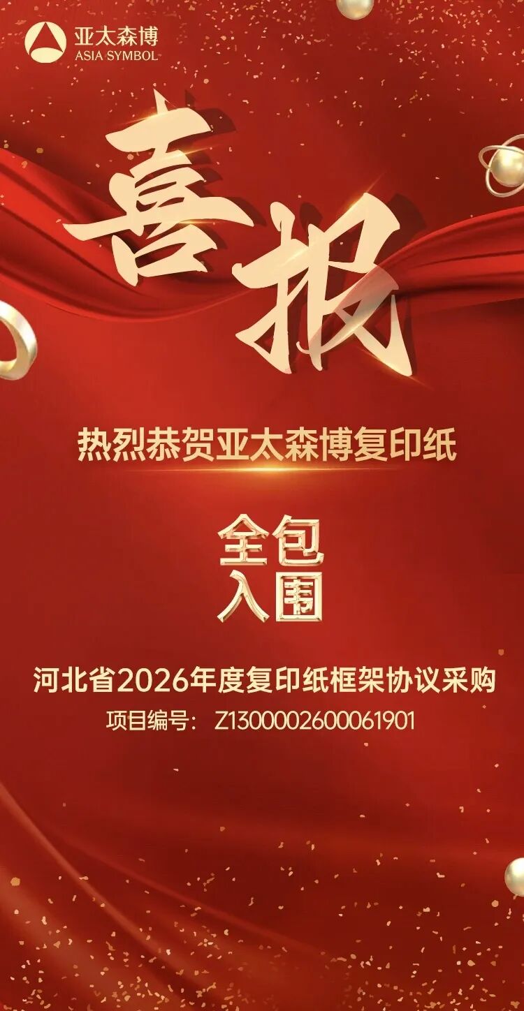 亚太森博复印纸全包入围河北省2026年度复印纸框架协议采购项目