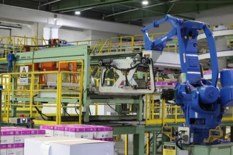 在新投产的数智化自动立体仓,设备正在进行无人化作业。