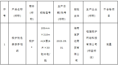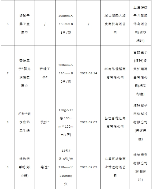 2025年海南省流通领域生活用纸产品质量监督抽查所检项目符合相关标准的产品