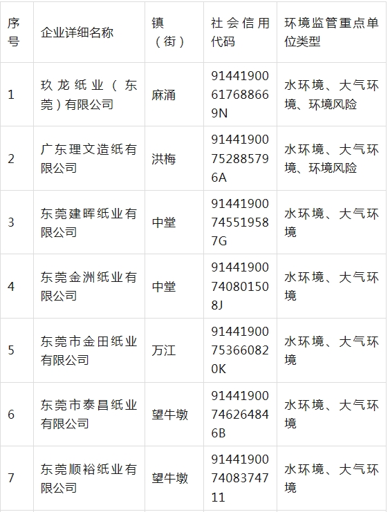 3月31日,东莞市生态环境局发布了《东莞市2026年环境监管重点单位名录》,全市共有1008家单位被纳入2026年环境监管重点单位名录,其中包括玖龙纸业(东莞)有限公司、广东理文造纸有限公司等多家知名造纸企业。 据了解,根据2023年1月1日起施行的《环境监管重点单位名录管理办法》,环境监管重点单位类别包括:水环境重点排污单位、地下水污染防治重点排污单位、大气环境重点排污单位、噪声重点排污单位、土壤污染重点监管单位,以及环境风险重点管控单位共六大类。 东莞市生态环境局表示,将督促环境监管重点单位依法履行自行监测、信息披露等生态环境法律义务,并采取措施防治环境污染,防范环境风险。