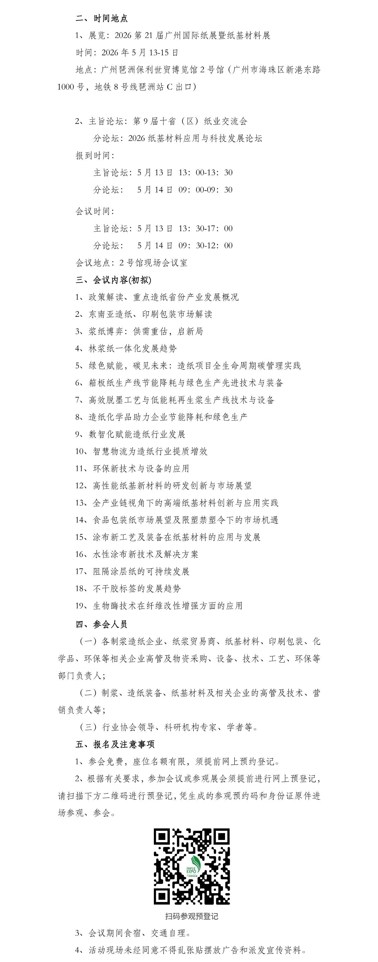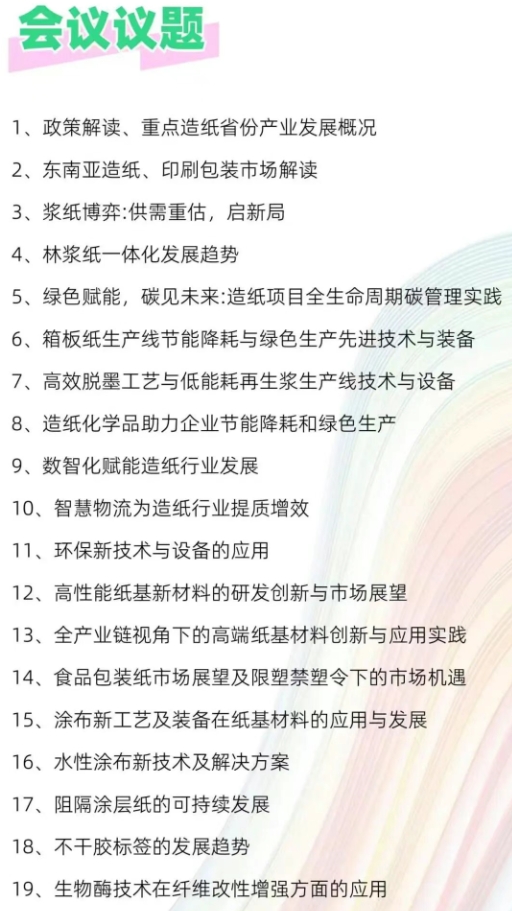 展会同期举办2026 第九届十省(区)纸业交流会与2026 纸基材料应用与科技发展论坛,围绕政策导向、全球市场、浆纸格局、绿色低碳、智能制造、新材料创新六大核心议题,汇聚行业权威专家与领军企业展开深度研讨。 论坛立足国内重点造纸省份产业政策与发展态势,前瞻东南亚造纸及印刷包装市场潜力;解析全球浆纸供需新格局,探索林浆纸一体化可持续发展路径。聚焦全生命周期碳管理、节能降耗、再生浆高效利用、绿色化学品及环保新技术,分享低碳生产实践与先进装备应用;以数智化升级、智慧物流赋能产业提质增效,推动行业高质量转型。 同时,论坛围绕高性能纸基新材料、高端纸基材料创新应用展开交流,解读食品包装纸及 “限塑禁塑” 政策带来的市场机遇,分享涂布新工艺、水性涂布、阻隔涂层技术及不干胶标签发展趋势,探讨生物酶技术在纤维改性增强领域的前沿应用,为造纸、涂布、包装、新材料全产业链提供技术指引与解决方案。