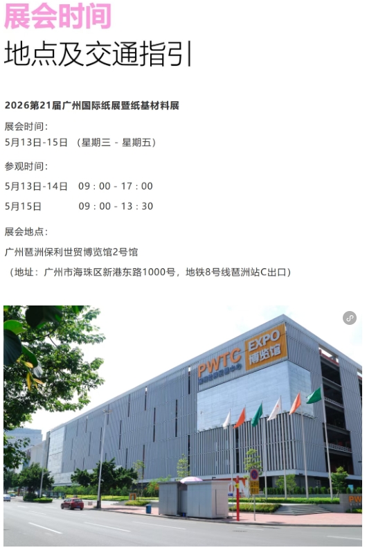 当绿色+低碳浪潮席卷全球,数智化转型的号角已然吹响,全行业正处于高质量发展的关键周期。 为凝聚产业智慧,探索发展新路径,由广东、江苏、河南、浙江、四川、广西、福建、湖北、江西、河北、山西、湖南、云南等省(区)造纸协(学)会及山东省轻工机械协会共同主办2026第21届广州国际纸展暨纸基材料展,将于5月13-15日,在广州琶洲 · 保利世贸博览馆召开。