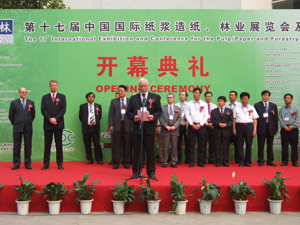 主持人宣布第十七届中国国际纸浆造纸、林业展览会开幕
